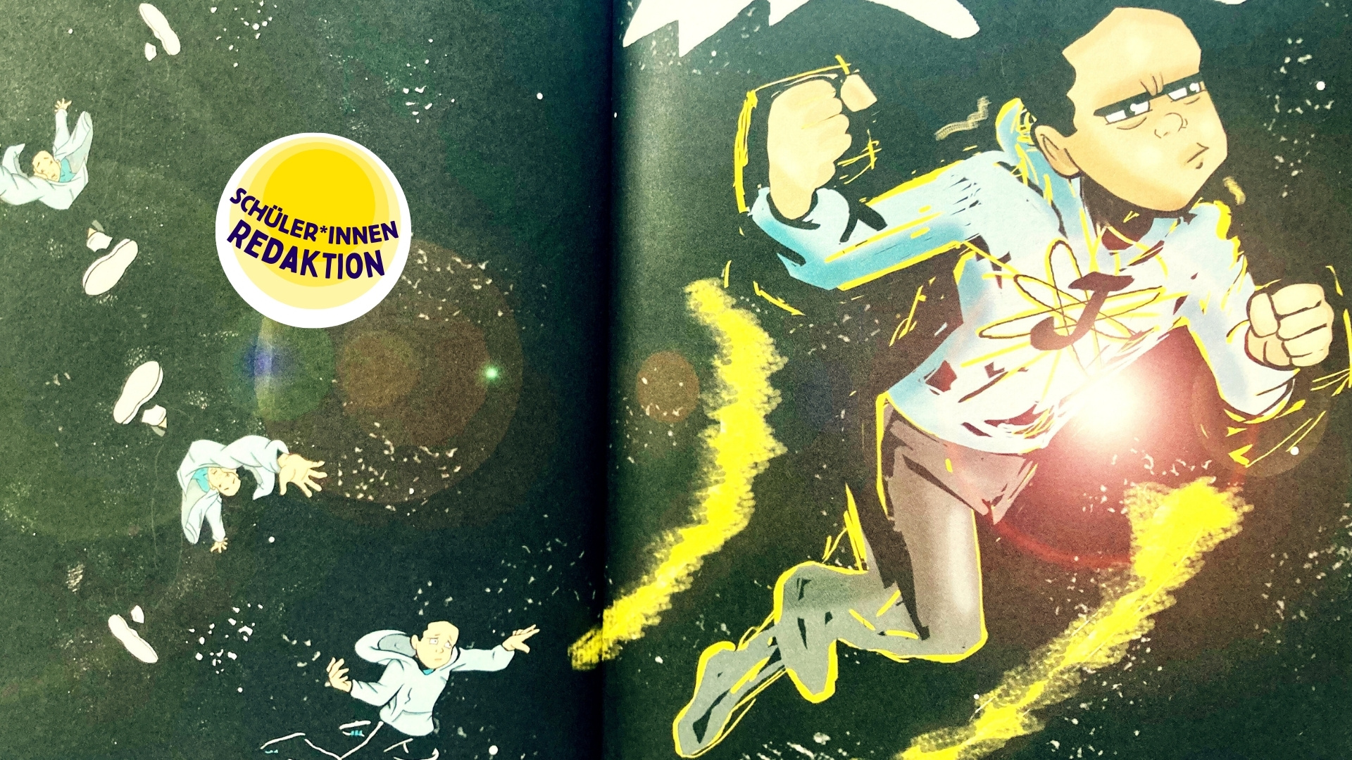 Wenige zeitgenössische Autoren haben der Science-Fiction ihren Stempel in dem Maße aufgedrückt, wie Cixin Lui dies vermochte: millionenfach gelesene Werke in 18 Sprachen, Lobeshymnen der internationalen Presse, sowie Auszeichnungen mit den prestigeträchtigen Hugo und Locus Awards – Cixin Lius Einfluss auf das Genre ist nicht zu unterschätzen. Für die »Cixin Liu Graphic Novel Collection« adaptieren 26 herausragende Künstlerinnen und Künstler aus China und Europa 15 ausgewählte Kurzgeschichten als Comic-Alben. Ein bisher nie dagewesenes Kooperationsprojekt, das Lius wegweisende Visionen der Zukunft in ein neues Licht rückt. „Die Versorgung der Menschheit“, setzten Sylvain Runberg und Miki Montllò als Graphic Novel um. Dastin, Wisam und Civan von der Paula Fürst-Gemeinschaftsschule waren zurecht beeindruckt.