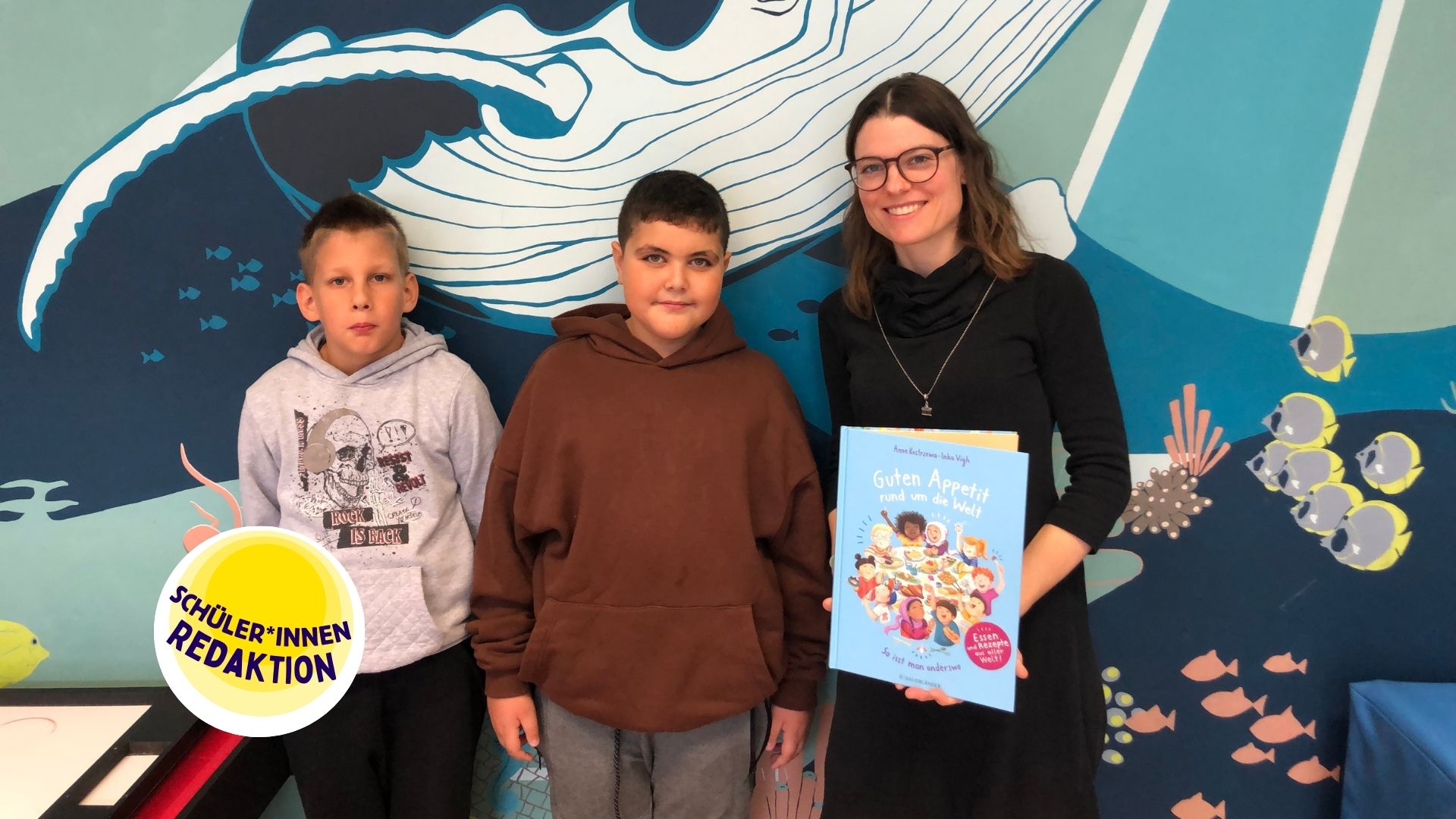 Anne Kostrzewa ist neugierig. Neugierig auf fremde Länder, neue Menschen, überraschendes Essen, Speisen der Zukunft – und auf Arda und Enrico aus der Schüler*innen-Redaktion. Die beiden 10-Jährigen haben sich mit der Autorin getroffen, um über Kostrzewas neues Buch „Guten Appetit rund um die Welt“ zu sprechen.