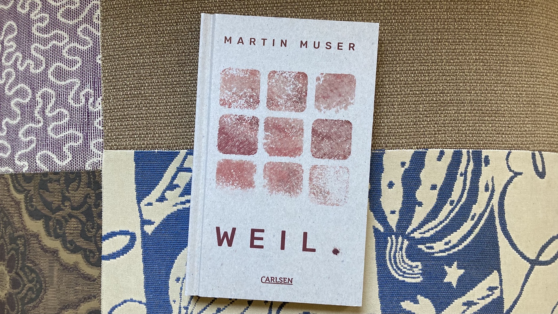 Martin Muser ist bislang wohl am bekanntesten für seine dreiteilige Kinderbuchreihe „Kannawoniwasein!“, die als Buch und als Hörbuch ein großes Publikum fand. Nun hat er mit „WEIL.“ ein zwar schmales, aber doch großes Jugendbuchdebüt hingelegt. „WEIL.“ hat das Potenzial, Generationen von Achtklässler*innen die Köpfe qualmen zu lassen: Eine spannendere Gesprächsgrundlage für den Deutsch- oder Ethikunterricht kann man sich kaum vorstellen.