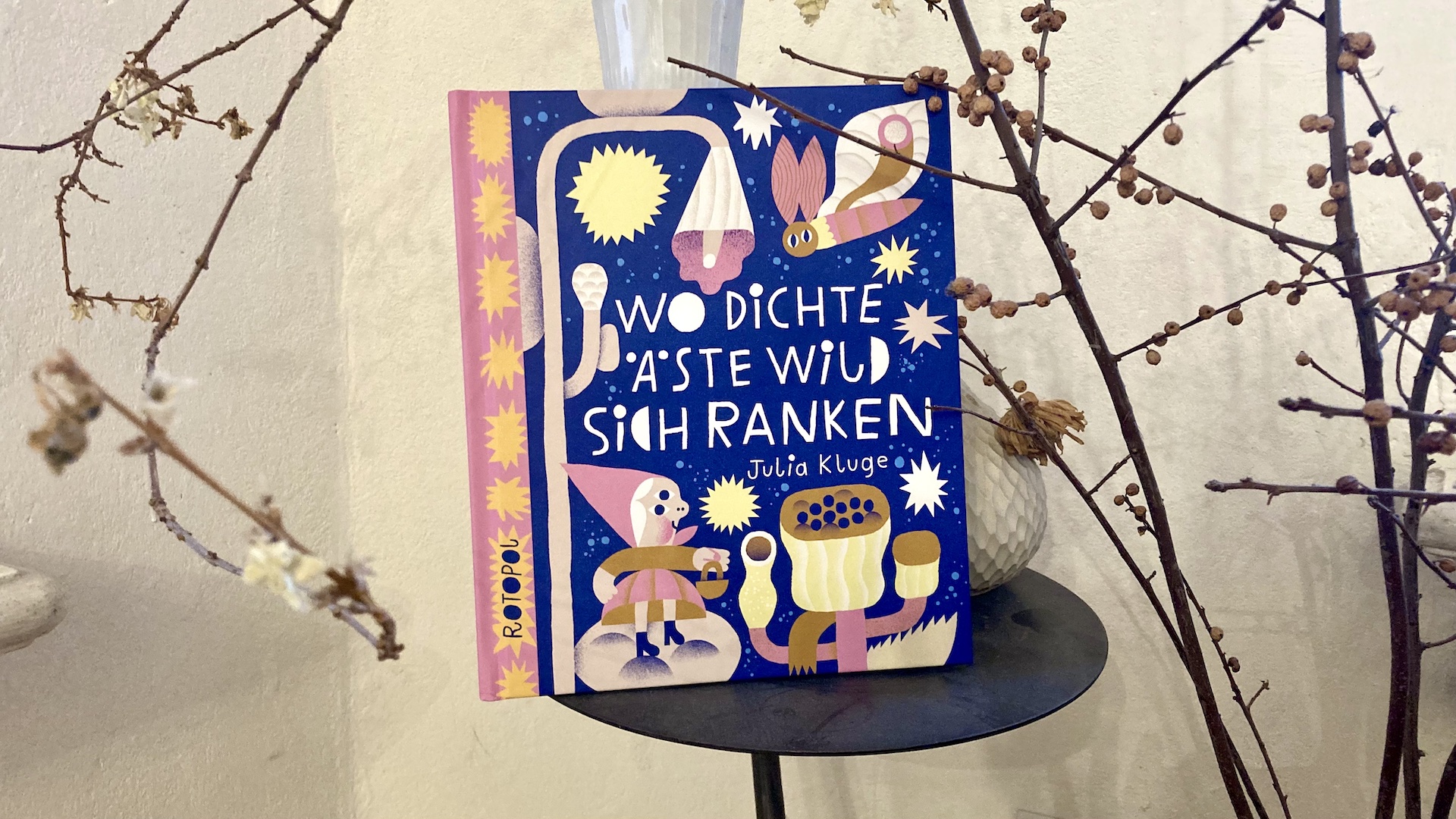 „Wo dichte Äste wild sich ranken“ von Julia Kluge erschien bei Rotopol, dem schönen Spezialverlag für speziell schöne Bücher. Hier passt dieses speziell schöne Bilderbuch natürlich perfekt in die Reihen. Und die Handlung? Kurz gesagt: es geht um die Seltsamkeit der Nacht und die Großartigkeit von Großmüttern.