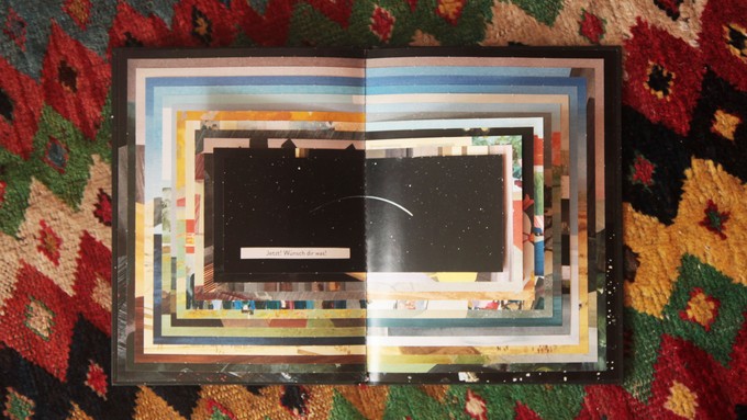 Je weiter das Buch sich auf einem immer schneller werdenden Zeitstrahl zur Gegenwart hinblättert, desto kleiner werden die Seiten, bunt gerahmt von dem, was schon gezeigt wurde, und dem, was noch gezeigt werden könnte. Schließlich tritt die Gegenwart in den Mittelpunkt. Eine Sternschnuppe fliegt über das kleine Tableau, eingebettet von den Schnipseln der Vergangenheit und Zukunft. Der flüchtigste Augenblick wird zum magischen Zentrum, zum allesverbindenden Gefühl des Lebendigseins. Das Davor und Danach – es gehört halt dazu.