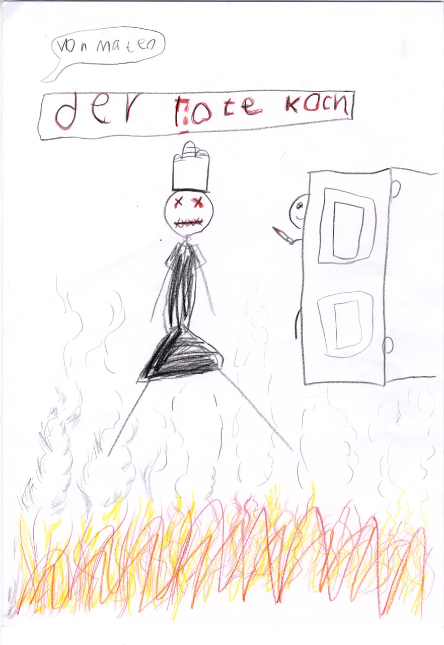 Mateo löst die Situation ganz anders. In seinem Comic erwartet den Koch ein hartes Schicksal. Der Titel sagt alles: „Der tote Koch“ ist womöglich ein „Guro“, also ein Manga, das von Gewalt erzählt.