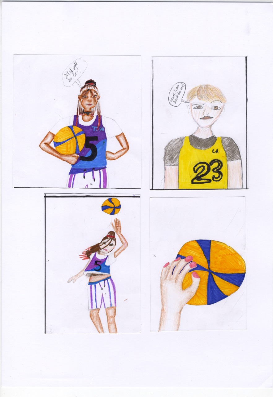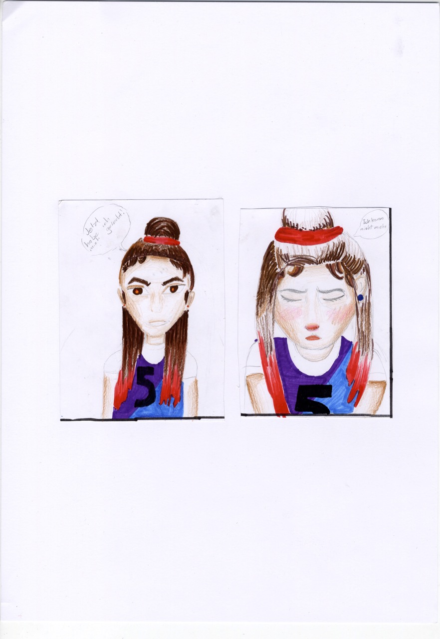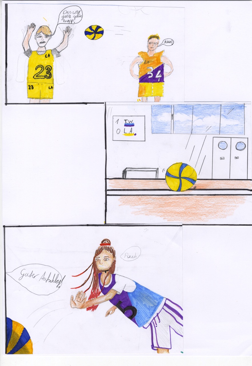 Karlo, Junis und Cauri haben sich ebenfalls mit „Elle(s)“ beschäftigt und zeigen, was sie beim Volleyball (und beim Zeichnen) drauf haben.