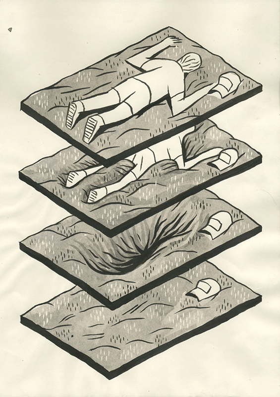 Ich bin da vielleicht ein wenig durch mein Elternhaus geprägt, mein Vater war ja Finanzbeamter … (lacht) einen konkreteren Beruf gibt es ja eigentlich nicht. Da war ich dann schon irgendwie stolz sagen zu können, dass ich damit Geld verdiene. Das bekam dann schnell für mich etwas Pragmatisches, mit dem ich aber sehr gut leben konnte. Ich habe ja auch nicht zwingend einen Stil, den man als Trademark bezeichnen könnte … ich habe da eine gewisse Flexibilität entwickelt, glaube ich. Es gibt da Unterschiede in den Stilistiken, je nachdem, an welchem Projekt ich gerade arbeite. Früher dachte ich, dass so etwas eher eine Schwäche wäre, nicht allein einen Stil oder eine bestimmte Technik zu haben. Heutzutage begreife ich das aber eher als Freiheit. Am Ende ist es allein wichtig, dass die künstlerische Handschrift durchscheint – egal ob ich nun mit Kohle zeichne oder mit Tusche, egal ob ich einen Risograph verwende oder komplett digital arbeite.