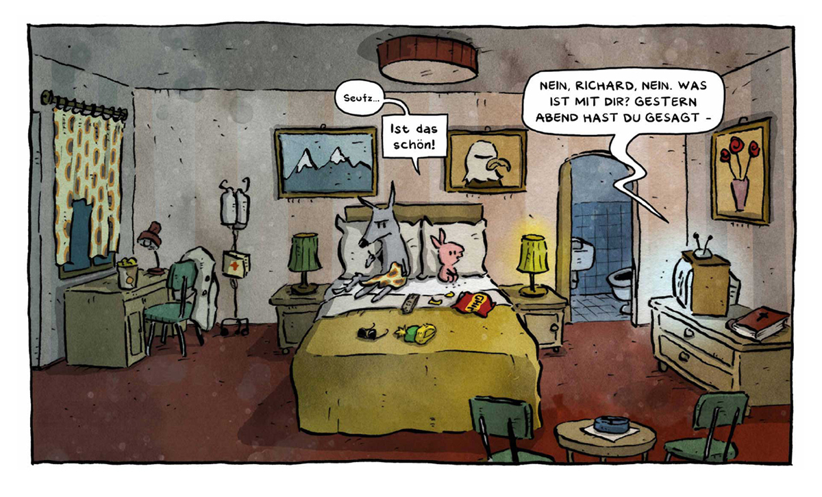 In einer Schlüsselszene des Buchs schmettern Kaninchen und Wolf ja „Born to be Wild“ aus vollem Halse. Hast du lange überlegen müssen, ob du ausgerechnet diesen Gassenhauer für das Buch adaptierst oder hat sich das alles ganz organisch gefügt?
