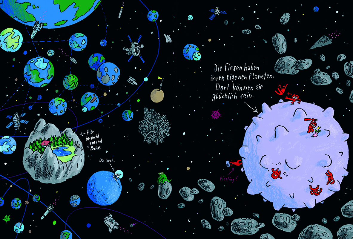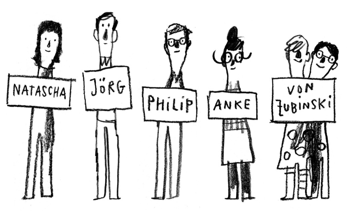 Unterschiedlich … Philip, Anke und Jörg war von Anfang an klar, dass sie Kinderbücher illustrieren wollen. Andere haben sich anfangs weniger dafür interessiert. Die Labor Ateliergemeinschaft wurde aber mehr und mehr als gute Adresse für Illustration und Kommunikation für Kinder wahrgenommen. Als wir die Gelegenheit bekamen, zusammen ein Buch zu machen, haben wir uns gefreut – die Idee lag schon länger in der Luft. Inzwischen arbeiten wir eigentlich alle, mehr oder weniger und mit unterschiedlichen Schwerpunkten, sehr gern in diesem Bereich.