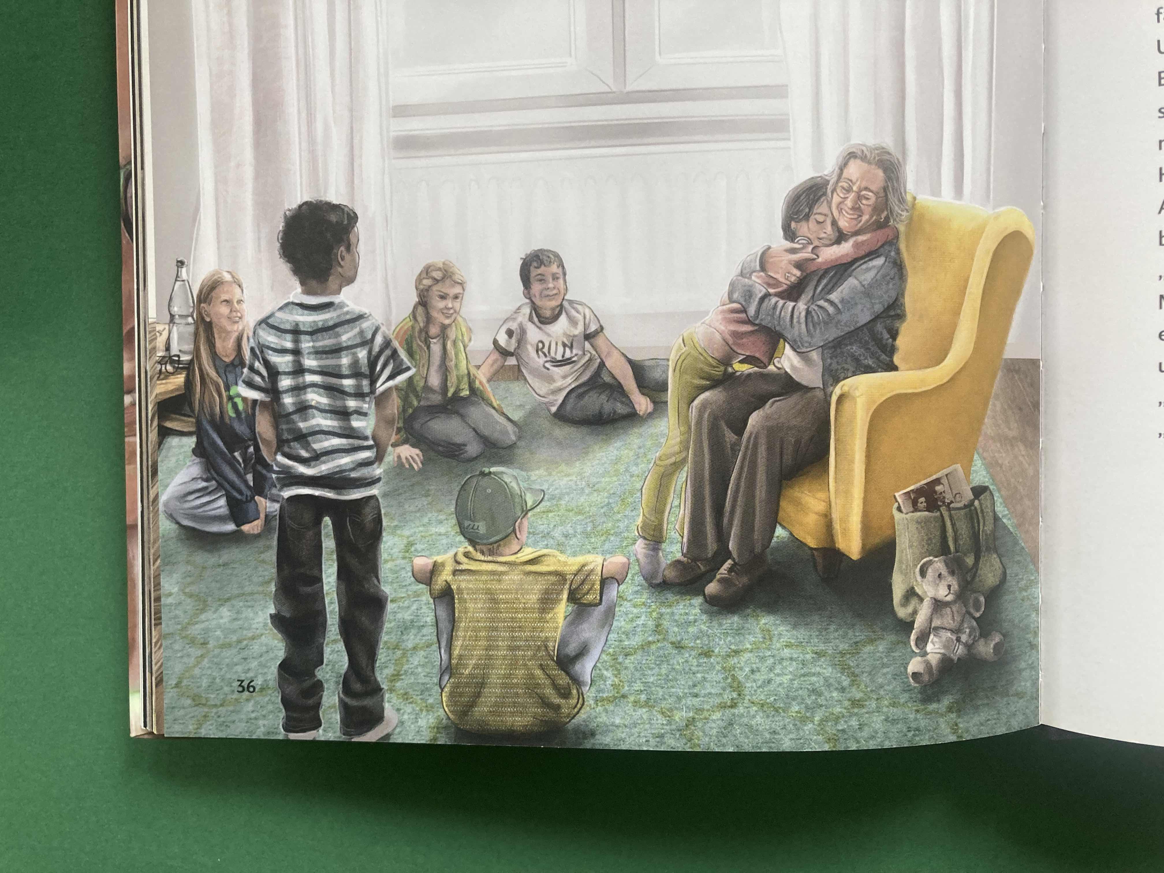 Ja, Christoph und Mia gehören zu unserem Projekt. Sie haben Bücher mitgebracht für unsere Klasse. Wir haben uns in Teams gefunden und uns das Buch ausgesucht, das uns am meisten gefallen hat. Wir haben Ihr Buch ausgewählt, weil wir die Geschichte schön und auch traurig fanden. Und weil es so ein wichtiges Thema ist.