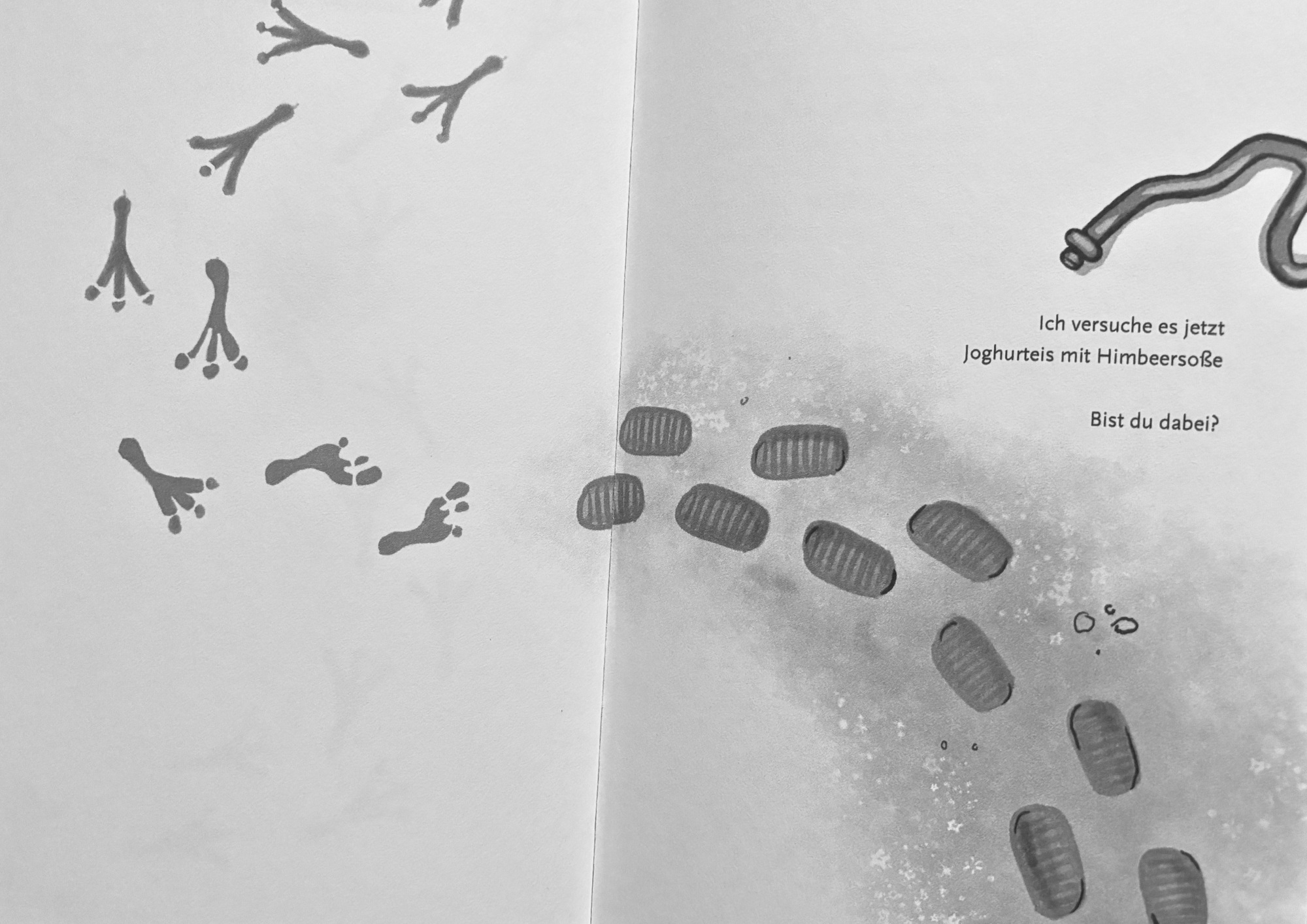 Die Phase, in der wir überlegt haben, wie wir das Buch gestalten wollen, worum es gehen soll und wie die Form wird, hat ungefähr ein halbes bis dreiviertel Jahr gedauert. Genauso lange haben wir dann noch einmal gebraucht, um den Text zu schreiben und die Illustrationen anzufertigen. Zwischen den ersten Treffen und dem fertigen Buch lagen also knapp anderthalb Jahre.
