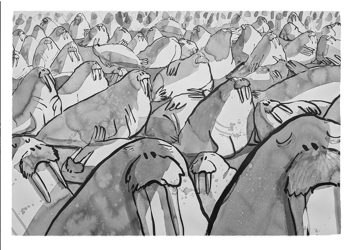 Die absolut fantastischen, detailverliebten Illustrationen in „Unser gigantischer Fußabdruck“ stammen von Tom Sears, dem jüngeren der beiden Brüder - und vielleicht, aber nur vielleicht, sind seine Zeichnungen endlich auch mal positive Beispiele von Resultaten, die durch die pandemiebedingten Umstände hervorgerufen wurden: Zwei Monate bevor die britische Regierung den ersten großen Lockdown veranlasste, verließ Tom seinen Job, um fortan als Freelancer zu arbeiten … ein grauenhaftes Timing, was ihm jedoch rückblickend genug Zeit verschaffte, sich penibel mit dem visuellen Erscheinungsbild des Buches zu beschäftigen. Was für ein Glücksfall für uns alle!