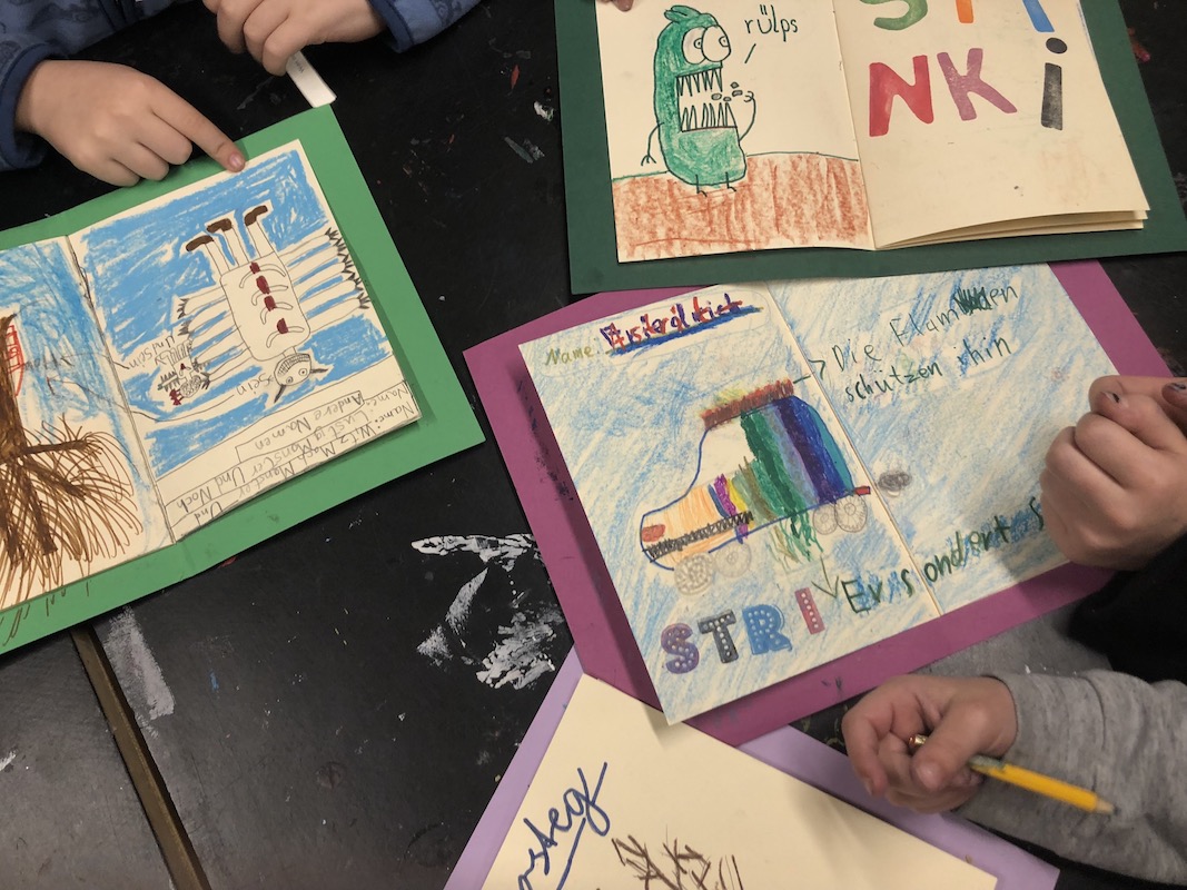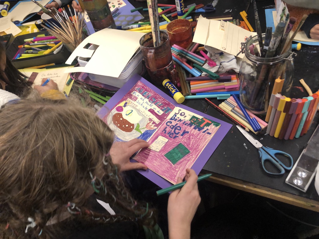 Zucker & Zitrone war dieses Jahr das erste Mal dabei. An drei Samstagen widmeten wir uns gemeinsam mit den Kindern jeweils einem Thema: Der Zeit, eigenwilligen Monstern und Geheimsprachen. Im Vorlesesalon des wunderbaren Kinderbuchladens Krumulus ließen wir uns von Büchern inspirieren, um dann in der Druckwerkstatt selbst tätig zu werden. Die Kinder entwickelten ihre eigenen Geschichten. Es war beeindruckend, wie sie im besten Sinne eigenartig ihre Sichtweisen erfanden und ihre Erzählungen Seite für Seite zu Papier brachten. So gestalteten sie ihre persönlichen kleinen Bücher - fantastische Zeitschmöker, Anleitungen zur Zähmung von Problemmonstern und Fantasiesprachen-Lexika.