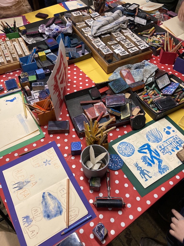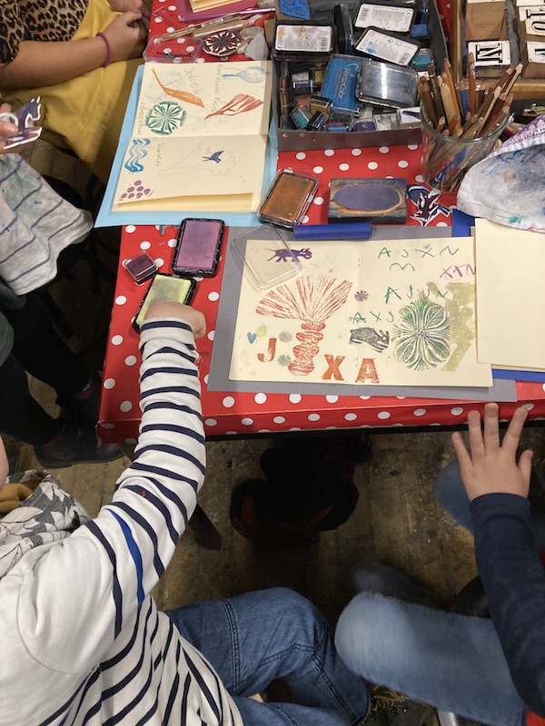 Im Rahmen des KinderKulturMonats hatten wir an drei Samstagen wunderbar erfindungsreiche drei Stunden in der Druckwerkstatt des fantastischen Buchladens Krumulus. Die Workshop-Teilnehmer*innen haben uns mit ihren Eigenarten im besten Sinne, ihren Ideen und Talenten beeindruckt und entzückt. Es war ein großer Spaß! Aber sowas von!